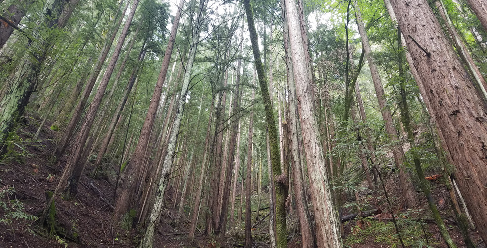 From Salinas we rode through rain all the way to Santa Cruz. I was surprised at how things turned mountainy so quickly. From there we climbed along Highway 9 through mountain towns and beautiful redwood forests. The size of the trees was just amazing. So was the big banana slug that tried to hitch a ride on the bike.